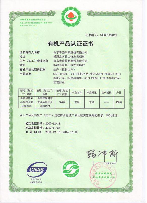 • 公司使用"沂源苹果"获国家农业部"农产品地理标志等级证书"